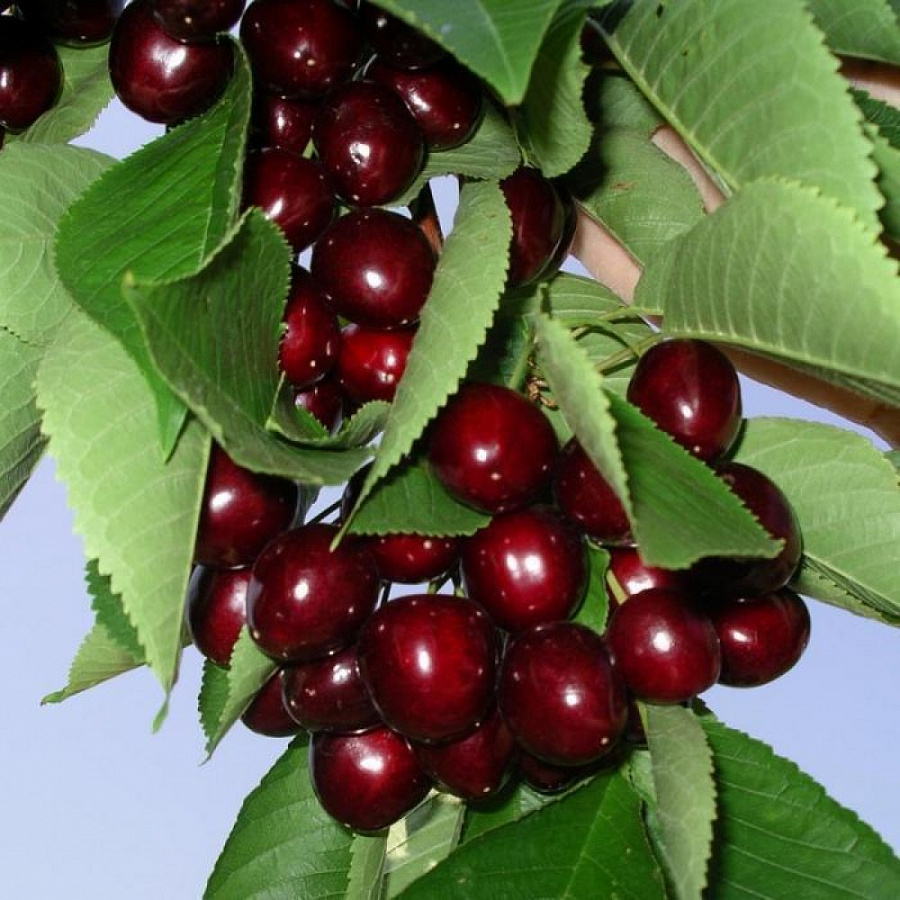 Саженцы черешни Мичуринка обладают поздним сроком цветения и созревания ягод , первые ягоды - на 6 сезон жизни крупномера. Относятся к сорту без самоопыления, «стерильному». Хорошие опылители – сорта Космическая, Сюрприз, Курортная,посадка данных опылителей рядом даст урожаи до 30 кг/д в саду. Дерево быстро достигает средней высоты и пышности кроны. Мякоть сочной ягоды красная среднеплотная с массой до 6,5 г, сладкая и легко снимается с плодоножки. Преимущества черешни Мичуринка: