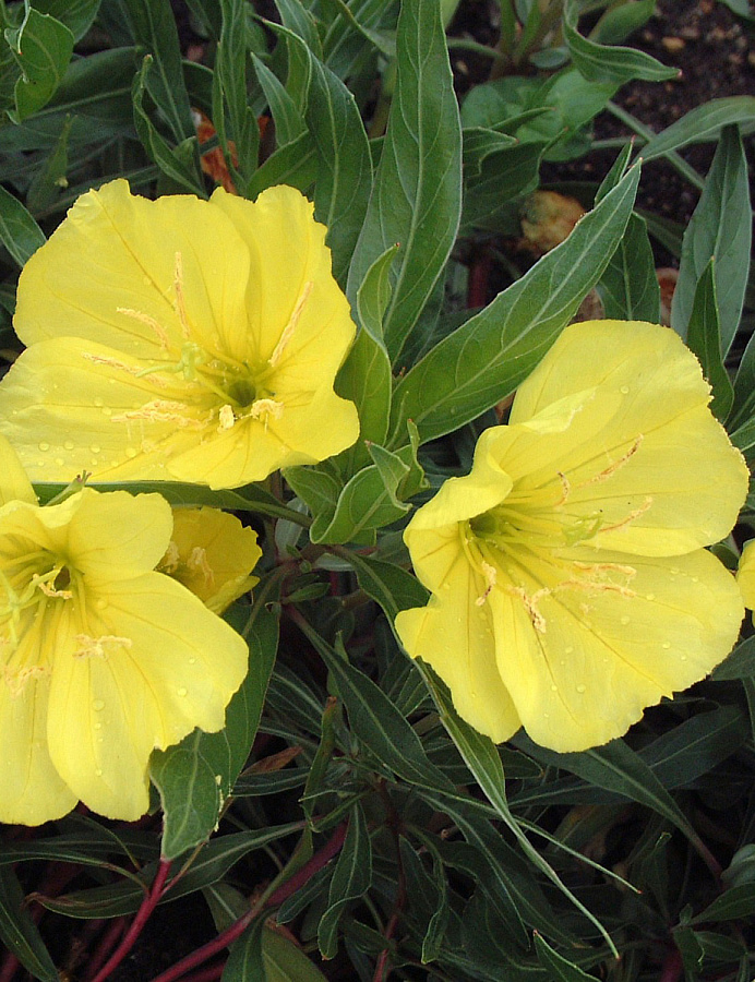 Энотера крупноплодная идеально подходит для оформления берегов водоемов и каменистых садов. Это необычное растение цветет на протяжении всего лета, но желтые цветочки раскрываются лишь в пасмурную погоду, а также по вечерам. Габариты взрослого куста достигают 40 см в высоту и 30 см в ширину.
