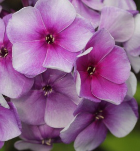 Рассада флокса метельчатого Алексей Ленский порадует любителей изысканных цветов нежной окраской. Края лепестков светлые, а к середине становятся темно-сиреневыми. На этом фоне контрастно выделяются белые тычинки. Цветы-звездочки собраны в полушаровидные плотные соцветия. Срок цветения – средний.