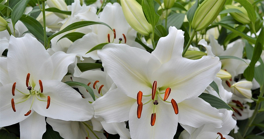 Окраска цветка : белый с насыщенно-оранжевыми пыльниками