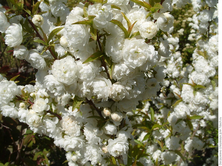 Саженцы вишни Железистой Альба Плена (Alba Plena) не оставят никого равнодушным в период цветения, не зря ее называют Русская Сакура. Характерная для культуры многочисленность цветков усиливается махровостью бутонов, благодаря чему белая крона кажется больше размером. Цветение начинается в мае и длится более 3 недель, позволяя в полной мере насладиться пышным шиком и девственной белизной.